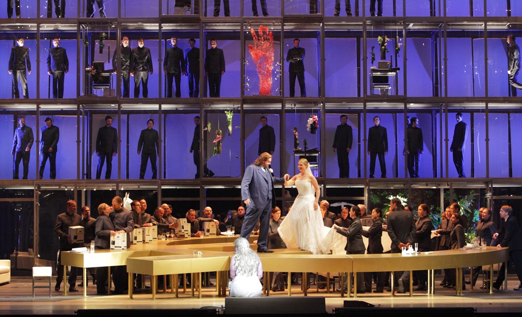 Словно языки живого пламени, которые в финальной сцене взвиваются, пожирая офисную мебель и прочий хлам, собранный для погребального костра по приказу Брунгильды, пульсировал и томился сегодня оркестр под управлением Кента Нагано. То поднимаясь к высотам душераздирающей экспрессии, то растворяясь в робких попытках проникнуть в эмоциональную сердцевину вагнеровского опуса, звучание баварских музыкантов хоть и не отличалось изысканной ровностью, но по своему эмоциональному накалу, пожалуй, вполне отвечало трагической томительности и экстатической импульсивности финальной части «Кольца».