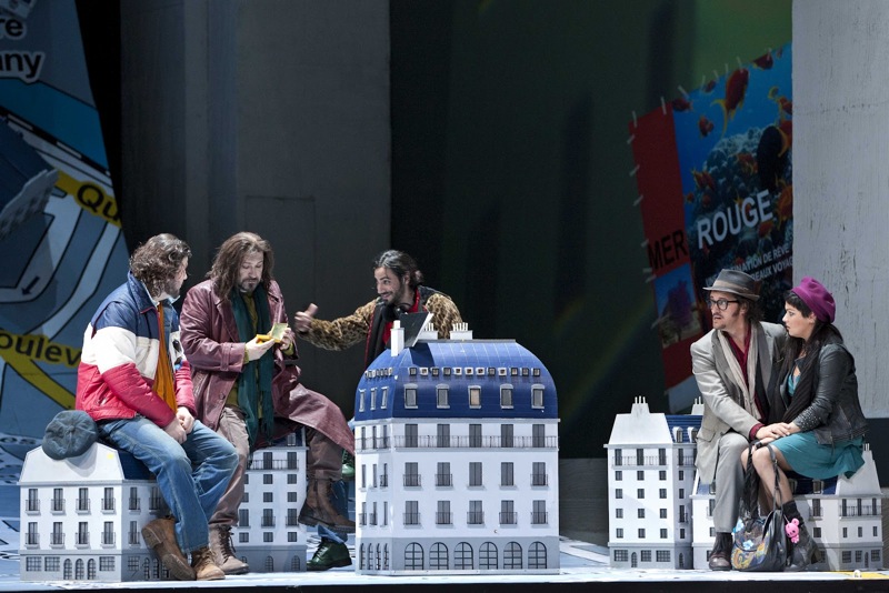 Режиссёр и сценограф прекрасно используют ёмкий и красноречивый сценографический приём брегенцской постановки Джонса и Мак-Дональда, показывая незначительность людей, населяющих романтический миф о парижской жизни вольных художников, посредством их соположения с бескрайним пространством окружающего их мира. Эта комбинация метонимии в первой картине с гиперболой – во второй, когда герои становятся гулливерами, возвышаясь «на крыльях своих чувств» над своей финансовой несостоятельностью, — визуализирует внутренние смыслы произведения, но настоящее эмоционально-интеллектуальное поле для адекватного его восприятия возникает только в третьей картине, в которой герои сталкиваются с жестокой реальностью, а элементы декораций возвращаются в рамки реалистических пропорций.