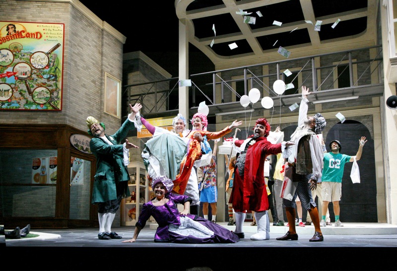 Идея вроде бы неплоха: действие разворачивается в Rossiniland (по аналогии с Disneyland под Парижем или Gardaland под Вероной). Так что забавная история любви молодого Флорвиля к дочери Гауденцио Софии не что иное, как один из аттракционов парка развлечений, по которому неустанно бродят любопытные туристы.
