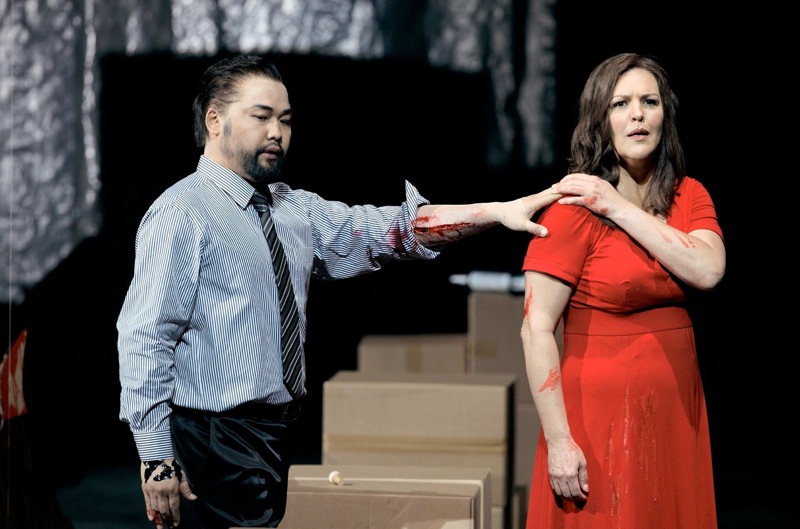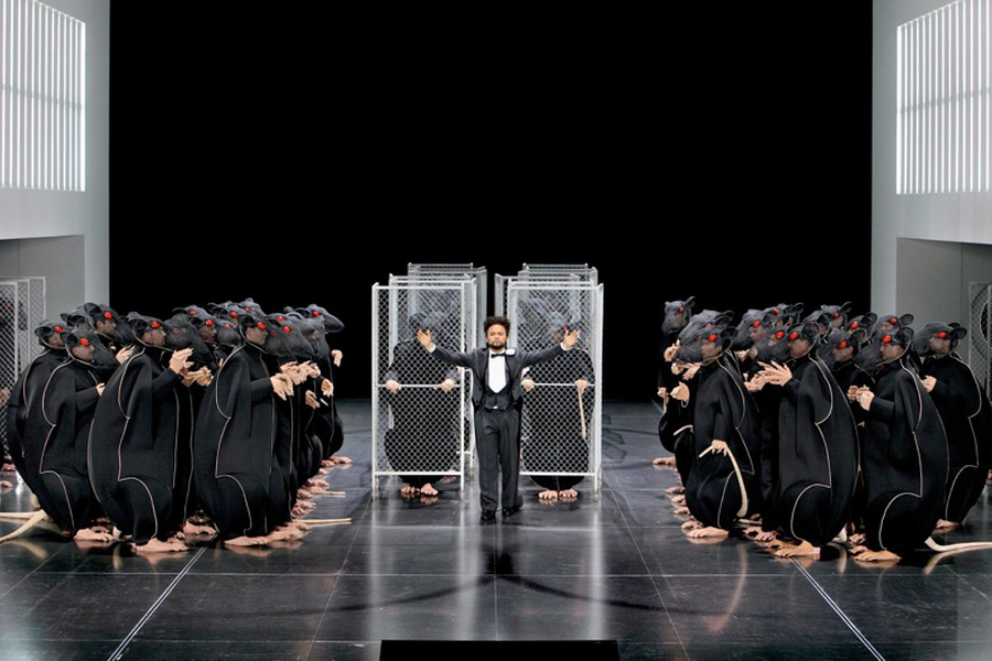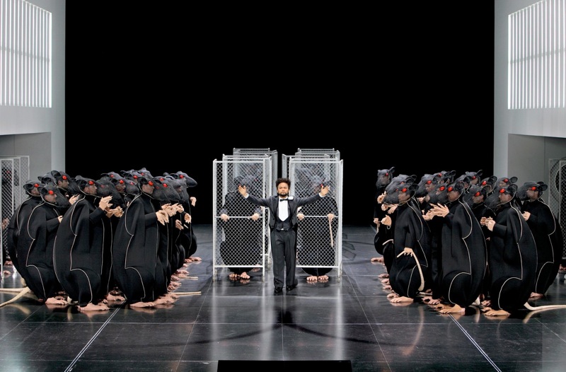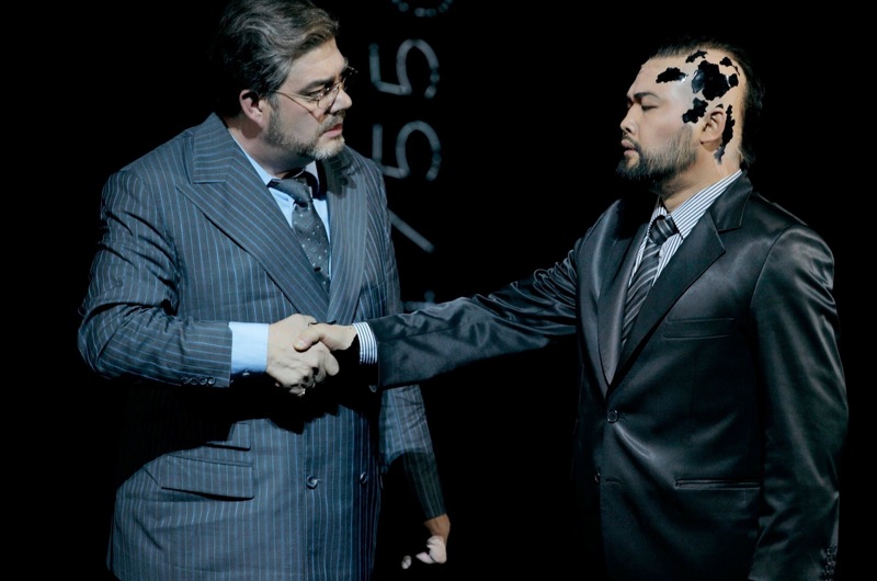 Это тот самый злосчастный спектакль, в котором не состоялся столь ожидаемый дебют мариинского баритона Евгения Никитина, о чем было уже сказано так много. По фотографиям в буклете можно было догадаться, что участие российского певца явно придало бы значительности постановочному решению, хотя заменивший Никитина корейский вокалист Самуэль Юн достойно спел главного героя оперы.