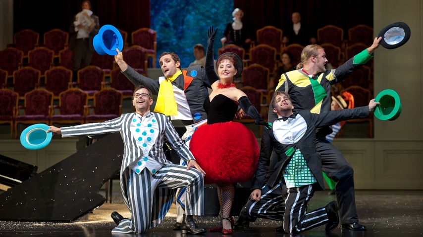 По-настоящему сложно выделить кого-либо из ансамбля клоунов – свиты Цербинетты: Габриэль Бермудез (Арлекин), Михаэль Лауренц (Скарамуччо, или Скарамуш – прим. ред.), Тобиас Кэрер (Труффальдино) и Мартин Миттерруцнер (Бригелла) обладают удивительными по красоте голосами и отточенным грамотным вокалом.