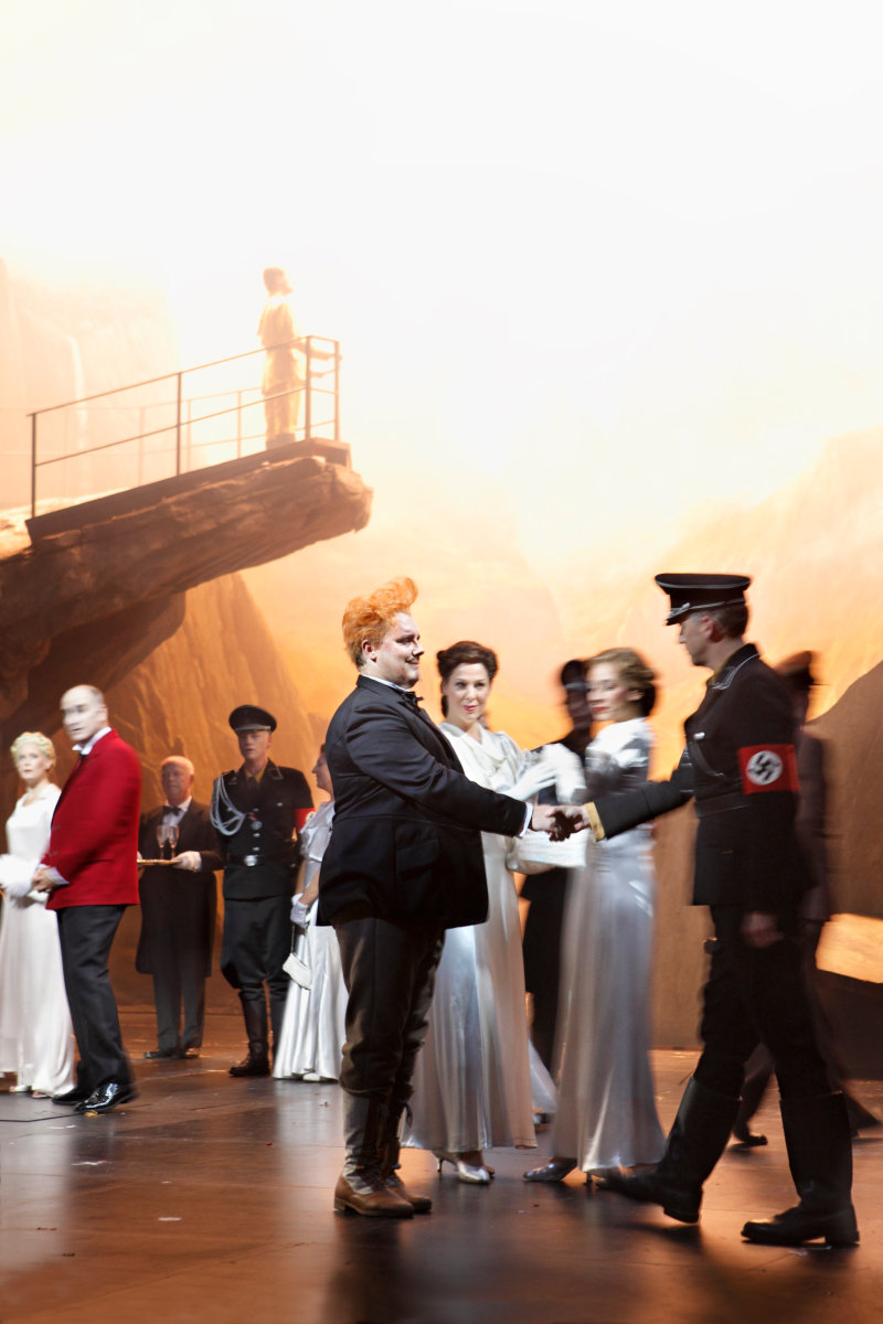 Дальнейшее, чтобы не отвлекаться на детали, воспроизводит практически все яркие эпизоды из восхождения и деяний фюрера. Странно только, что наряду с многочисленными соратниками в форме СС, Мефистофель всё же пользуется услугами трёх или четырёх артистов миманса, изображающих по старинке чертей. Они одеты в пятнистые темные трико с лохмотьями, корчатся у его ног, ползком двигаются по сцене, выказывают знаки подобострастия шефу, подают ему необходимые предметы и вполне мирно уживаются с прочими персонажами.