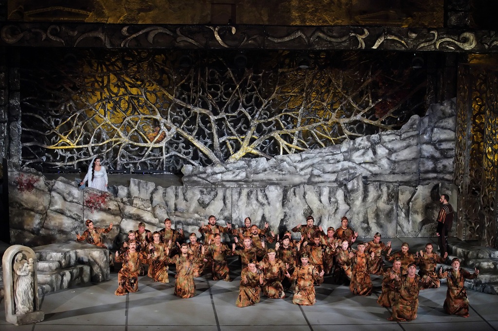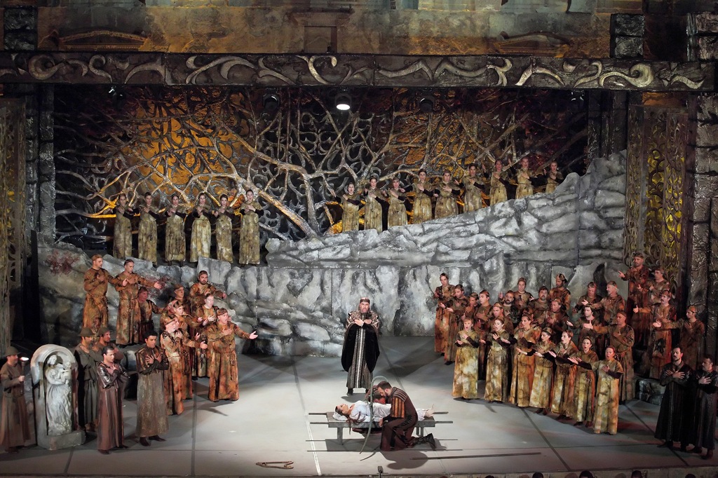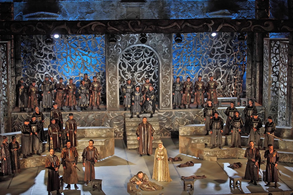 В постановочном плане «Тангейзер» в Аспендосе – редкий, удивительный по нынешним временам спектакль. В то время как во всём мире уже давно утвердилась практика обязательно модернистского прочтения опер Вагнера, анкарский театр и режиссёр Петер Леман предлагают совершенно традиционный спектакль, исторический по духу и по букве. По сути, это уникальная возможность – увидеть театральный опус великого немца в его первозданности. Необыкновенная обстановка древней аспендосской чаши – античного амфитеатра второго века нашей эры – в которую в прошлом году более чем удачно вписалась «Медея» Еврипида – Керубини, оказалась вполне подходящей и для средневековой германской легенды.