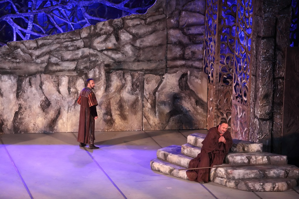 Но не все из певцов аспендосской премьеры – новички в вагнеровском репертуаре. Исполнитель титульной партии тенор Унишан Кулоглу можно сказать уже опытный вагнерианец – за его плечами исполнение таких партий как Эрик в «Летучем голландце», Лоэнгрин, Зигмунд в «Валькирии». Партию Тангейзера Кулоглу исполнял не только на премьере оперы в Анкаре в мае прошлого года (премьера в Аспендосе – сценическая редакция анкарского спектакля), но и ранее – в постановке Алма-атинского театра оперы и балета им. Абая, в концертном варианте в немецком Вартбурге, то есть именно там, где разворачиваются по либретто события оперы. Кроме того, певец неоднократно исполнял ведущие партии в операх Моцарта, Бетховена, Вебера и Рихарда Штрауса – большинство из них были спеты в Германии, то есть с немецкими музыкальными традициями артист знаком не понаслышке. На спектакле в Аспендосе это было отчётливо слышно. Хотя певец, обладающий красивым и мощным тенором и успешно поющий также и итальянский ходовой репертуар, не утерял красоты и пластичности вокализации, полноценности тона и мягкости звуковедения, традиционно считающимися добродетелями истинного бельканто, его артикуляция была острой и чёткой, немецкое произношение ярким и понятным каждому, кто владеет немецкий языком, а звуковой напор соответствовал вагнеровским представлениям о героическом теноре. Особенно удачными для Кулоглу оказались второй и третий акты: если поначалу в верхнем регистре чувствовалось небольшое напряжение (что, возможно, объясняется проведённой накануне генеральной репетицией), то к середине оперы тенор распелся окончательно и звучал абсолютно комфортно и убедительно.