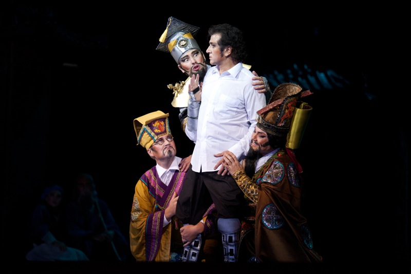 Роскошен вокал украинского баса Сергея Ковнира (Тимур) – голос сочный, глубокий, крупный, владеет им певец более чем достойно. Хотя роль его героя, равно как и партия, совсем не велика, артисту удаётся встать вровень с центральными персонажами, главным образом, за счёт впечатляющего вокального мастерства. Можно сказать, что безупречны ансамбли трёх министров, которые держатся на уверенном пении минчанина Владимира Громова (Пинг), но также хороши и казанцы Олег Мачин (Панг) и Юрий Петров (Понг). Словом, в премьерной премьерной казанской «Турандот» не было ни одного слабого звена, что не может не радовать поклонников великого жанра.