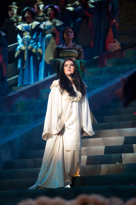 Подбор вокалистов не вызывает вопросов. Обжигающе ледяной вокал киевлянки Оксаны Крамаревой с успехом рисует образ жестокосердной принцессы; у певицы едва ли драматическое сопрано, скорее крепкое спинто, но владеет им она уверенно, с блеском справляясь с тяжелейшей в мировом сопрановом репертуаре партией. Кроме того, образ удаётся и артистически: холодная и надменная на протяжении всего спектакля, закрытая и какая-то одномерная, героиня преображается в трагическом финале данного спектакля, на её лице остаётся сомнение, вопрос, растерянность и почти ужас от свершившегося.