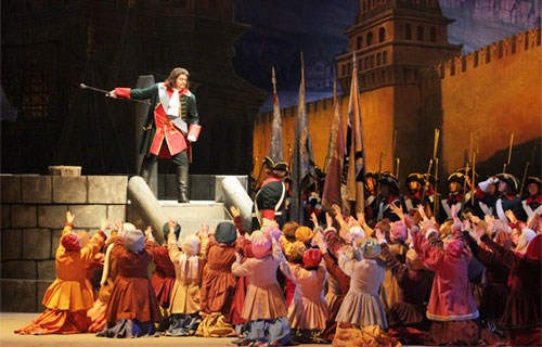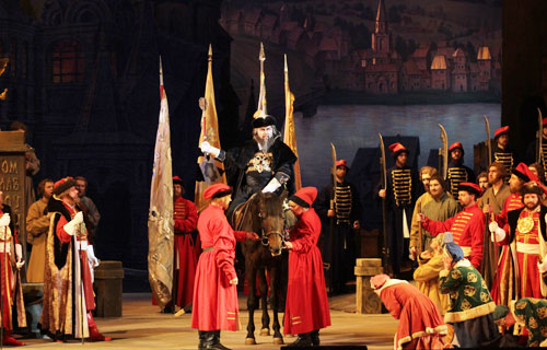 Не обошлось и без сюрпризов. В первом действии Иван Хованский (Сергей Алексашкин), приветствуя стрельцов, въезжает на коне! Благородное животное замечательно справилось со своей ролью, мирно простояв сцену и держа на себе оперного солиста. Радости публики не было предела.