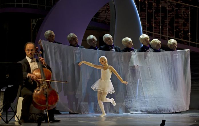 Совершенно непонятно, зачем в канву «повествования» был введен затянутый угловато-пародийный балетный номер в исполнении хореографически слабо подготовленной девочки. Конечно, «Каприччио» Штрауса содержит в себе пародийный элемент, но как завещание великого музыканта XX века в целом этот трактат категорически нельзя рассматривать как пародию, ибо такая интерпретация не только обесцвечивает произведение, но и обесценивает его…