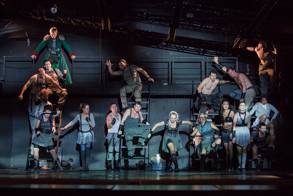 Очень достойно выглядели солисты – Игорь Вялых – Серпуховский, Герман Юкавский – Генерал, Павел Паремузов – Тарас, Алексей Морозов и Александр Полковников – старый и молодой Холстомер. Чуть слабее оказались женские персонажи – у Екатерины Ферзбы прослушивалось «качание» голоса, возможно, связанное с волнением, несколько портившее впечатление от глубокого и красивого тембра, а Екатерина Большакова в роли Матье была слишком тяжеловесна и груба – ее огромное меццо-сопрано, как норовистую кобылу, надо держать в узде. К сожалению, не всегда был безупречен оркестр (дирижер-постановщик спектакля Владимир Агронский) – видно, что материал еще только сыгрывается, не прочувствован и не исполнен до конца точно. А это жизненно необходимо для такого небольшого состава. Ведь при исполнении подобной музыки, построенной на сложных политональных созвучиях, роль точной интонации каждого голоса возрастает многократно. Тоже самое касается и звучания хора – не всегда хватало нужной, если не мощи, то тембральной полноты, глубины и силы.
