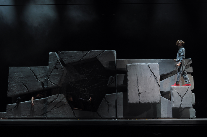 Схолий четвертый. Заключительная часть, «Семь сновидений», опять не певческая, густо населена сновидцами всех мастей и культурных эпох. Здесь и пресловутый Чжуан-цзы со своей бабочкой (в опере это, правда, какой-то другой китаец, и вместо бабочки у него бамбуковая палка), и Дон Жуан, мечтающий об идеальной любви, и коварная маркиза де Мертей из «Опасных связей», и главный ленивец русской литературы Обломов, видящий пророческий сон о революции. Советский солдат, которому пригрезился Сталин, и библейский пророк Иезекииль. И даже герой, по-видимому, совсем новейшего времени под именем «экзистенциалиста-постструктуралиста» (альтер-эго автора?). С точки зрения режиссуры (Илья Шагалов, мастерская Кирилла Серебренникова) завершающий эпизод сделан, пожалуй, наиболее целостно. Китаец с бамбуковой палкой превратился в циркового канатоходца. Дон Жуан утешается с резиновой куклой. Маркиза де Мертей заманивает жертву в настоящую паутину. Солдату под видом Сталина является Каменный Гость. Зримое воплощение в этом эпизоде, наконец, обретает и Лабиринт, составленный из передвижных фрагментов-ячеек, в каждую из которых, как муха в смолу, намертво влипает тот или иной персонаж.