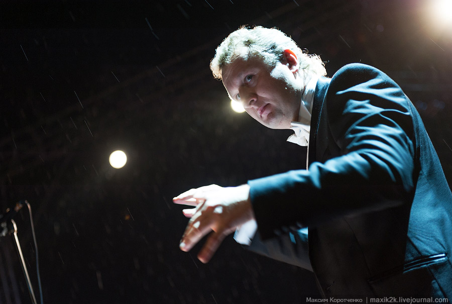 Самое яркое впечатление open-air проекта – работа Валерия Воронина и его подопечных: сочная оркестровая игра, задумчивые темпы в неторопливых, эпических сценах, буря эмоций в драматических кульминациях (сцена под Кромами, так часто купируемая сегодня театрами, - настоящий подарок слушателям!), хорошая проговоренность музыкальных тем, общая тембровая цветистость звучания, прекрасная координация с хором, который стал заметно лучше, крепче, увереннее с нашей последней встречи на «Пиковой» летом этого года (хормейстер Галина Дунчева) – всё в целом говорило об очень продуманной работе, о концептуальном подходе к воплощению партитуры. Добавьте к этому ещё экстремальные условия ненастья, грозившего сорвать всю акцию астраханцев, и вы поймёте, что театр во главе со своим худруком свершил настоящий подвиг!