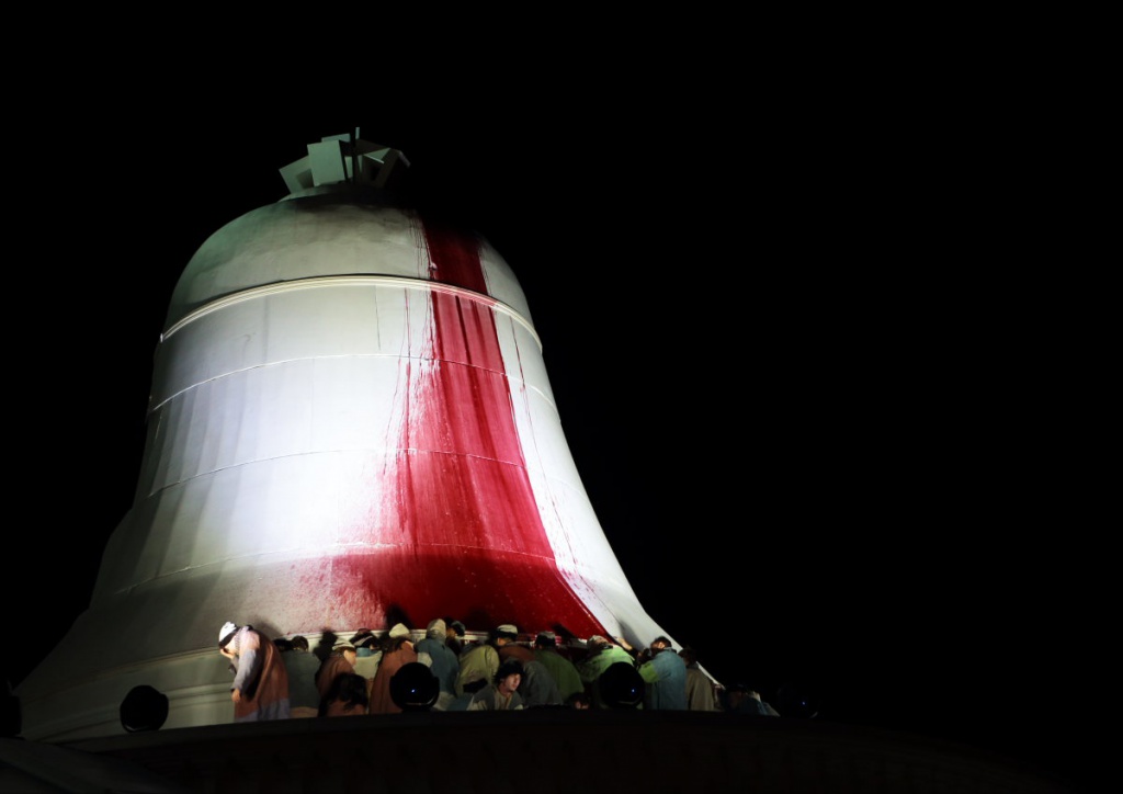 Главная находка и центральная визуальная доминанта – это огромный колокол, возведённый на Лобном месте. Образ этого гиганта олицетворяет собой колокольный звон, так много значивший в жизни русского человека, олицетворяет одновременно и духовность народа и его бунтарскую сущность (не зря колокола в своё время наказывали и ссылали как настоящих политических противников). Внутри этой конструкции, наполовину открывающей зрителям своё внутреннее пространство – звонница, где в урочный час будет бить в набат Юродивый – в это время с кремлёвской колокольни, символа Астрахани, раздаётся натуральный колокольный звон, органично вплетающийся в партитуру Мусоргского. В финале оперы, начавшейся с фактически кровавого дела, и предвещающего кровавое продолжение, о котором как раз и жалуется Юродивый в своих знаменитых причитаниях, колокол вновь поворачивается тыльной, закрытой стороной к публике и по нему струями стекает кровавый поток – сильная, безотказно действующая метафора. Никаких ужасов, зверств и пыток, никакой «расчленёнки», чем так сегодня часто злоупотребляет и театр, и кино, желая вызвать у зрителя соответствующие эмоции, - а потрясает, ужасает до глубины души.