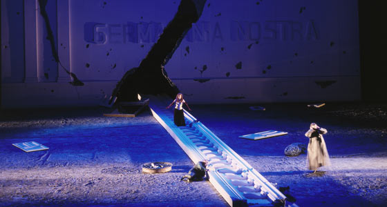 Постановка Дэвида Олдена была выпущена восемнадцать лет назад, записана на DVD и основательно разобрана по косточкам (что, впрочем, несложно, поскольку режиссёрских смыслов и идей в спектакле ровно на пару абзацев). Сегодня «Тангейзер» Вагнера идет в Баварской опере в инсценировке по мотивам того самого спектакля, но в чем состоит принципиальное отличие актуальной версии от первоначальной, понять сходу непросто: разве что крокодила с авансцены убрали, да народу в гроте Венеры поубавилось, а перекошенная белая колонна, надпись «Germania Nostra», разрушающийся классический портик и спасительный твердый занавес с зеркалами и дверями как многозначительными символами неотразимости и безысходности соответственно – как были, так и остались свидетельствами претенциозной недосказанности в целом весьма добротного, но тривиального прочтения.