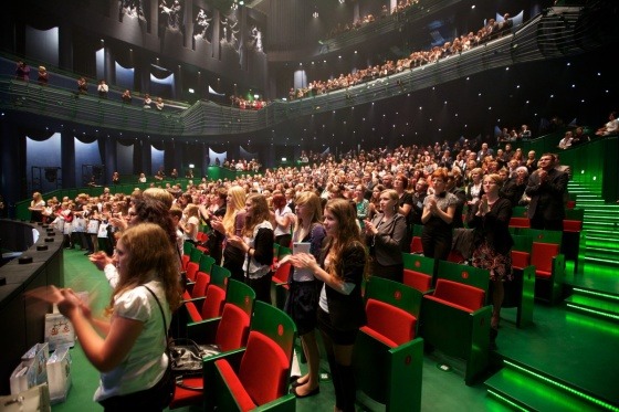 Большая заинтересованность этим событием была связана с несколькими причинами. Во-первых, новый театр принадлежит к числу самых современно-оборудованных в Европе. Верх зрительного зала образуют специальные стеклянные панели, которые позволяют регулировать акустику.