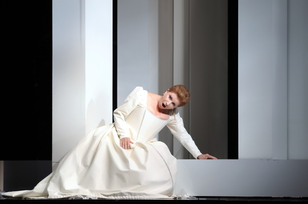Роль Марии Стюарт – ее роль, хотя можно утверждать, что для партии шотландской королевы в опере Доницетти требуется голос более плотный, чем у Девиа. Она появляется в бергамской постановке в простом белом платье, с собственной короткой прической, в заключительной сцене – без обуви. Минимум грима или нормальный каждодневный грим. Певица из Лигурии не нуждается ни в чем внешнем, в аксессуарах. Ее игра крайне сдержанна. Всего очень мало, и это малое – крайне утонченно и скупо дозировано. Мариэлла Девиа – воплощение бельканто, она создает образ средствами бельканто. Если кто-то забыл, что этот термин по-итальянски означает «прекрасное пение», певица напомнит об этом.