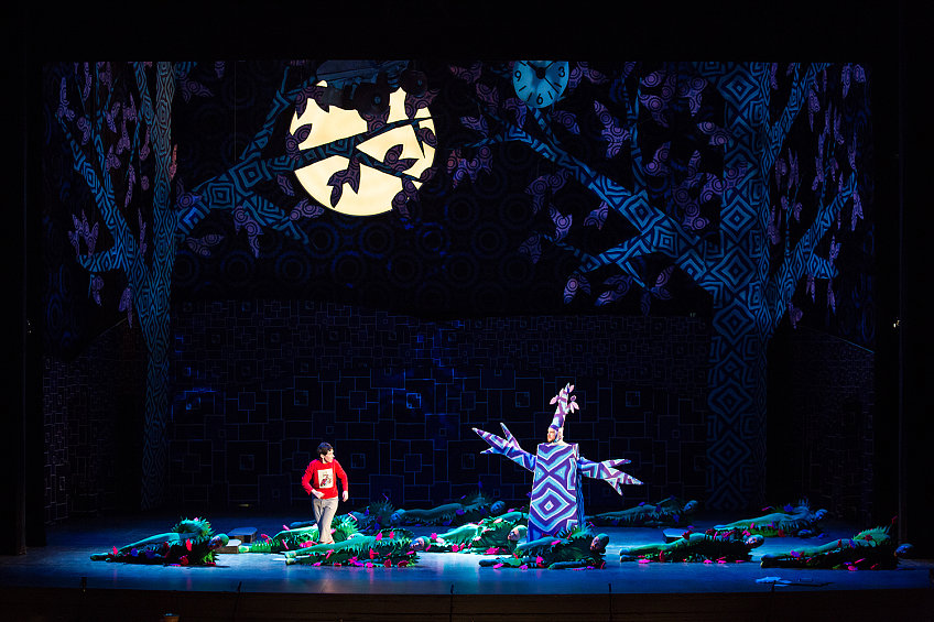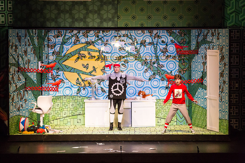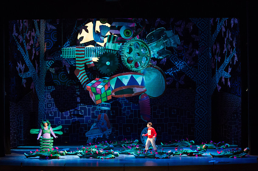 Отойду и я от принципа, что «в опере главное — певцы». Без исполнителей никуда, но в данном случае «Дитя и волшебство» прежде всего праздник для глаз, для эстетического созерцания сцены и взрослыми, и детьми. И о постановщиках хочется говорить сразу о всех вместе, настолько движение и мизансцены, общий замысел Екатерины Василёвой неотделимы от сценографии Александра Арефьева и костюмов Марии Чернышёвой.