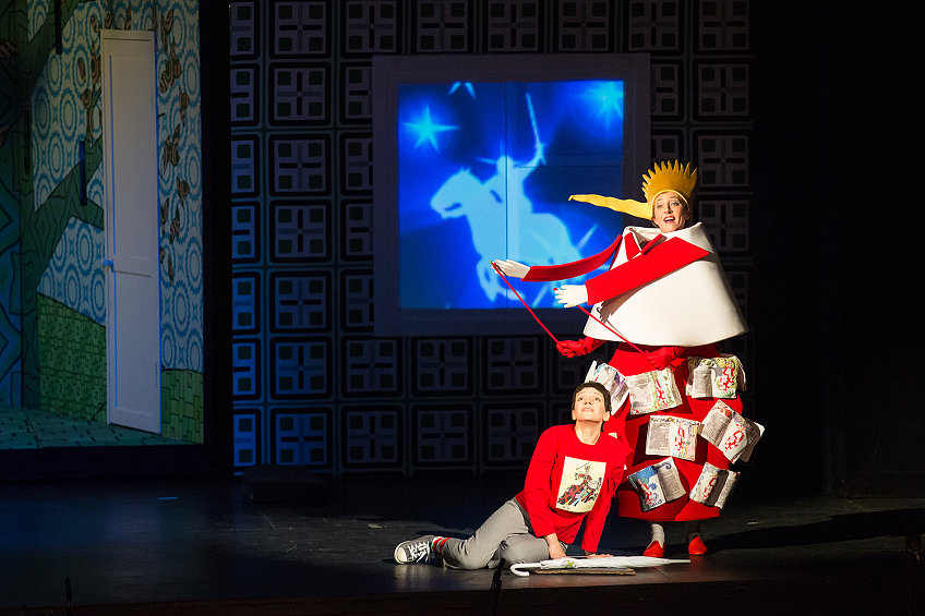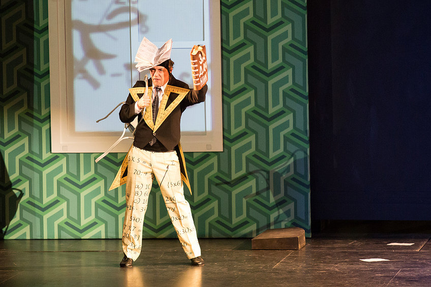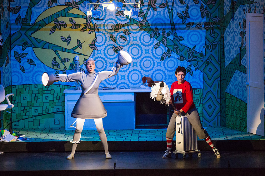 Современная видеопроекция (Александра Комарова) показывала, как в театре Теней, что происходит в других комнатах дома, где живёт Мальчик, или иллюстрировала события, когда явились школьные учебники во главе с Арифметиком. В финальной картине в саду особенно хорош был свет (Семён Швидкий), придававший объём оживавшему дереву, животным и птицам.