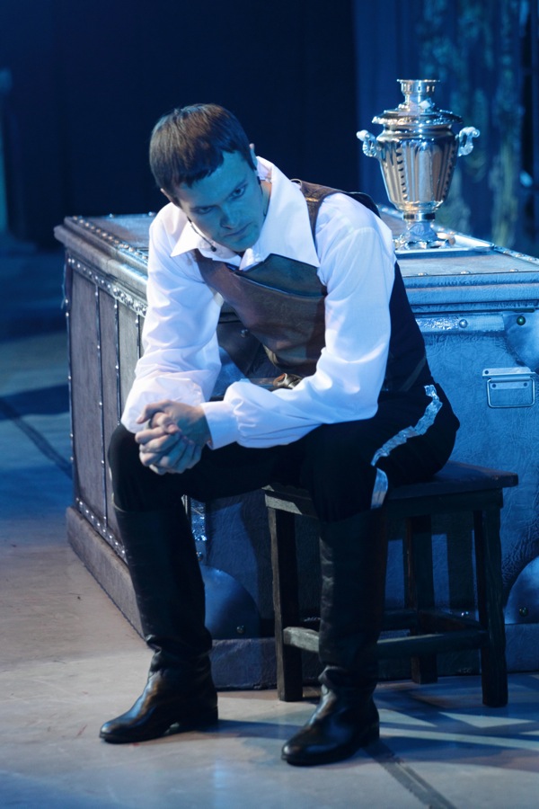 Очень сложно несомненно одарённому Алексею Соколову – хотя у него и довольно высокий по тесситуре баритон, ему приходится петь теноровую по стилю и краскам партию главного героя. Даже умело транспонированная под его голос партия всё равно остаётся насыщенной высокими пьяниссимо, требующими не просто пения на меццовоче, а фальцетированного звуковедения, с которым Соколов вполне успешно справляется. Его голос – приятного тембра, с мужественными интонациями, а сам артист подкупает артистичностью и искренностью переживаний. Молодой певец, хорошо знакомый красноярским меломанам, прежде всего, как солист театра оперы и балета, привносит в вокальную составляющую спектакля тот самый большой формат, который позволяет говорить о «Царевиче» как об одной из «легариад».