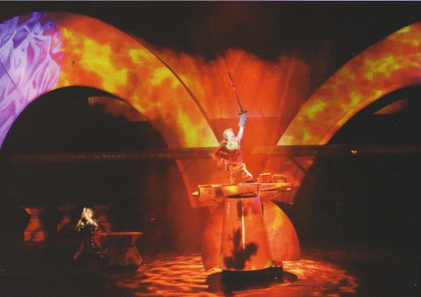 Удалось ли болгарской творческой группе, возглавляемой директором Софийской оперы и режиссером-постановщиком Пламеном Карталовым, решить задачу? Полагаю, да, хотя и частично. Причин несколько, среди них есть и чисто организационные. Ведь в такого рода представлениях решающее значение, подчас, приобретает изощренная сценография, работа художника по свету. Да и мифологический сюжет со сказочно-фантастическими метаморфозами и коллизиями, составляющими основу героического эпоса о Нибелунгах, призывает к этому. Но, даже не видя софийского оригинала, только по фотографиям можно понять – визуально спектакль, особенно его световая партитура в гастрольном варианте много потеряли. Не последнюю роль в художественных потерях играет и то, что спектакль вырван из контекста других частей цикла. А это, в свою очередь, ведет к утрате дополнительных ассоциаций, обогащающих восприятие.