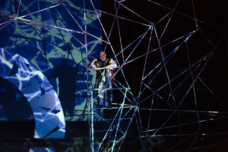Возвращаясь к геометрическому архитектурному лаконизму декораций, следует еще раз подчеркнуть: контраст между ними и вышеописанными визуальными деталями рождает ощущение некоей иронии – это важный посыл постановщиков, хотя и не такой уж оригинальный. Ну, действительно, можно ли всерьез относиться к геройству Зигфрида? Он страха не ведает вовсе не потому, что выковал свою смелость и бесстрашие в какой-то героической борьбе, а по наивности.