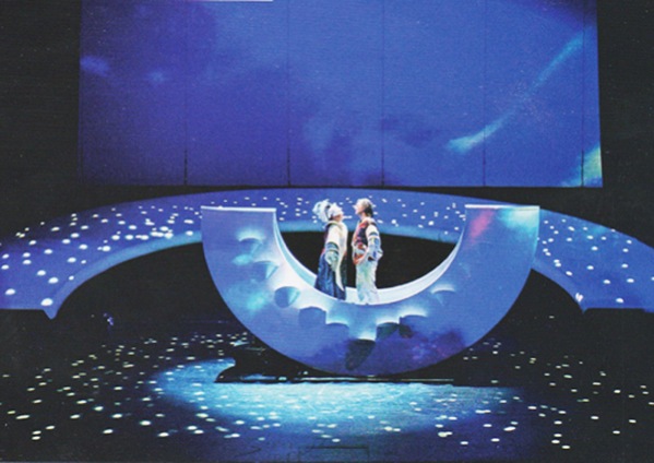 Причудливость запутанного сюжета нашла таки свое выражение, но не во взаимодействии действующих лиц, а, скорее, в визуальных деталях, костюмах. Как уже говорилось, все действие происходит в какой-то загадочной фантастической стране, а может быть и на далекой планете – на что намекают, как уже отмечалось, многочисленные кольца космического вида, «блуждающая» светомузыка и диковинные наряды, особенно техногенный костюм Странника (Вотана) с искусственным глазом. Этот Странник в одной из сцен играет в баскетбол мячом в виде земного шара – метафора простая, но убедительная! Сам Зигфрид появляется верхом на «самоходном» медведе. Такие приемы, как и предельно геометризованный до примитивных детских пирамидок-конусов облик Фафнера-Дракона создают эффект пародийного «снижения».