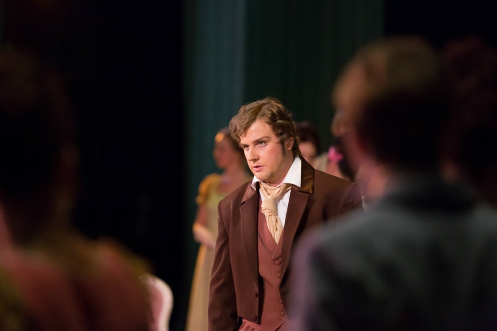 Если отбросить все эти привходящие обстоятельства и посмотреть правде в глаза, то мое мнение будет нелицеприятным – я не увидел впечатляющего артистизма ни у одного из четверки протагонистов, представлявших Академию молодых певцов Мариинского театра. Если лаконично – Андрею Бондаренко (Онегин) не хватало «породы», Мария Баянкина (Татьяна) выглядела холодноватой и скованной, Дмитрий Воропаев (Ленский) заботился, прежде всего, о вокале, а в актерстве Юлии Маточкиной (Ольга) ощущались штампы. От всего этого представление поблекло и приобрело рутинный налет.