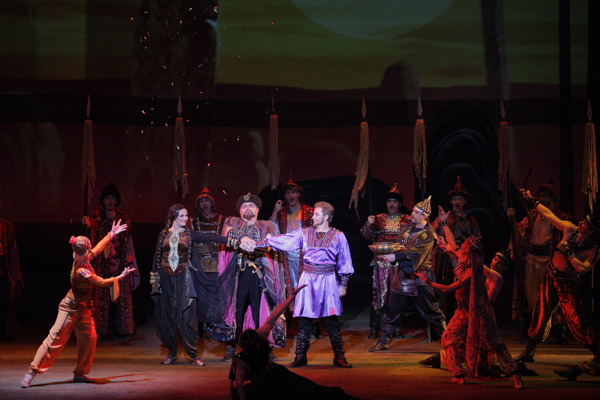 …Или в бессчетный раз искупаться в роскоши «Половецких плясок» с исторической хореографией Михаила Фокина, разукрасив их кое-какой сюжетной нагрузкой (Кончак отдает свою дочь княжичу – см. фото). Вариант беспроигрышный, если его не превращать в балаган, что, к сожалению, нынче бывает.