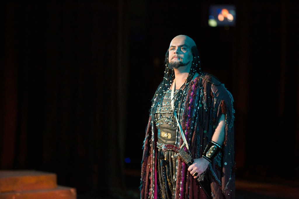 Начнем с «десанта» из московского Большого театра. Сохраняющий сочность голос Юрия Нечаева (Князь Игорь) мне нравился всегда. Его с некоторым лирическим отливом баритон и в этот раз летел в зал и доставлял удовольствие, а не это ли главное в опере? Сколько бы не «пыжились» режиссеры, ничто в этом жанре не заменит пения. Если его нет, идти в оперный театр – время терять! Добавлю, что точно был выбран темпоритм харизматической арии «Ни сна, ни отдыха измученной душе», позволивший сохранить внутреннюю энергетику, присущую этой гениальной музыке Бородина, не дать ей скатиться к какой-то созерцательной рыхлости раскисшего на половецких хлебах пленника. Нечаев не проявлял чудес артистизма и пафосности? Нормально! Это вполне соответствует музыкальному характеру его партии. Всегда надо помнить, что перед нами опера, а не какой-то театральный перформанс.