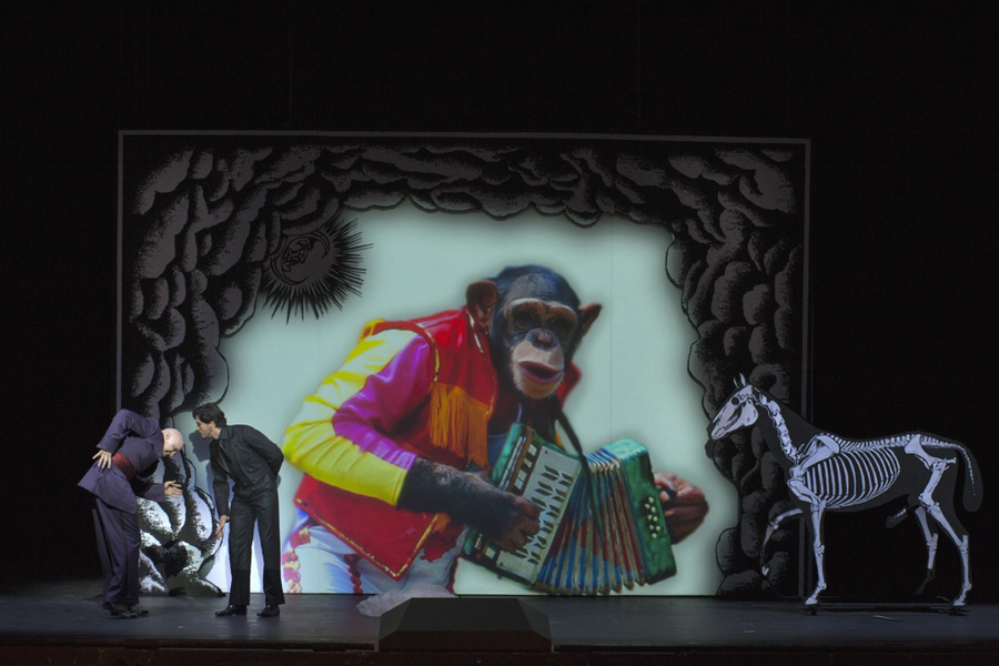 С сентября 2012 пост интенданта и главного режиссера «Комише» занял два года назад анонсированный австралиец Барри Коски, а пост музыкального шефа – молодой венгр Хенрик Нанаши. Коски планировал перевести театр на интернациональные рельсы – избавиться от обязаловки исполнения всех спектаклей на немецком языке, но вместо этого открыл сезон своей постановкой трилогии Монтеверди на немецком, а титры перевели в том числе и на турецкий язык, что логично, так как число проживающих в Берлине турок зашкаливает все мыслимые нормы. Не знаю, правда, ходят ли они в театр. Но вот этот факт сохранения главрежем в отдельных случаях немецкого языка мне кажется хорошим знаком. Хотел пойти на радикальное решение, но будучи театральным человеком, взял, да и отказался, чтобы не злить зрителя. А титры для турок – это ж еще и аттракцион, а какая комическая опера без аттракционов.