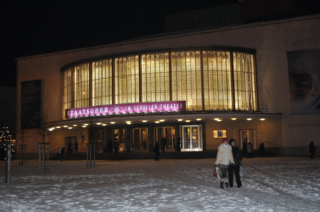 Это парадоксально, но три главных оперных гиганта немецкой столицы исторически сосуществуют на одной центральной магистрали города. «Staatsoper» и «Komische Oper» «живут» на востоке, на Унтер ден Линден, которая за Бранденбургскими воротами продолжается под названием «Улица 17 июня», плавно перетекая в важную артерию Западного Берлина – Бисмаркштрасе. На ней расположены не только «Театр Шиллера» (дом 110), но и «Deutsche Oper» (дом 35), которая, наверное, «пользуется» квартирными несчастьями «Staatsoper». Пока восточные коллеги ютятся в «Театре Шиллера», «Deutsche» точно не закроют (разговоры о ее закрытии велись также часто, как и о закрытии «Komische») – она вместительная и ретроградная. Здесь не часто дирижируют гении, еще меньше постановочных открытий, но зато регулярно поют Аня Хартерос, Эвелин Херлициус, Аня Кампе, Виолета Урмана, Рикарда Мербет, Марина Поплавская, Клаус Флориан Фогт, Кристиан Герхаер, Михаэль Фолле, Матти Салминен и др. В этом году театр празднует столетие, поэтому его сезон особенно яркий.