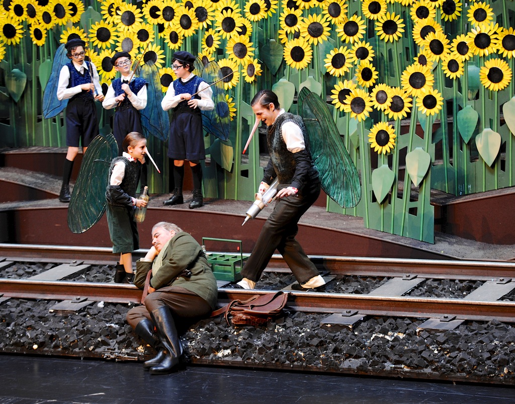 Только одно несоответствие слегка резануло глаз. На протяжении оперы Лесничий дважды шутливо попрекает Директора школы его чрезвычайной худобой. Однако британец Уинн Ивенс, исполнявший партию Директора, - мужчина весьма корпулентный. Нет, в опере и не такое бывает, но в данном логически выверенном спектакле подобное противоречие смотрелось странно. Разумеется, это мелочь, и я обратил на неё внимание лишь потому, что больше вообще не к чему было придраться.