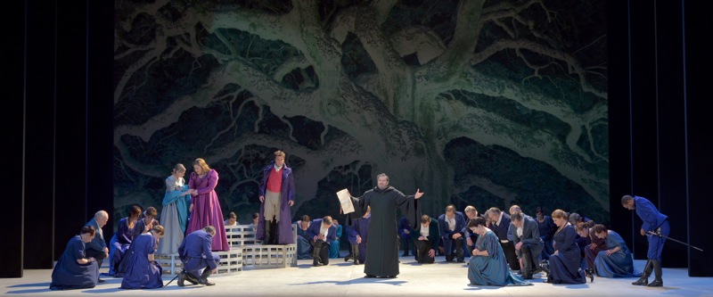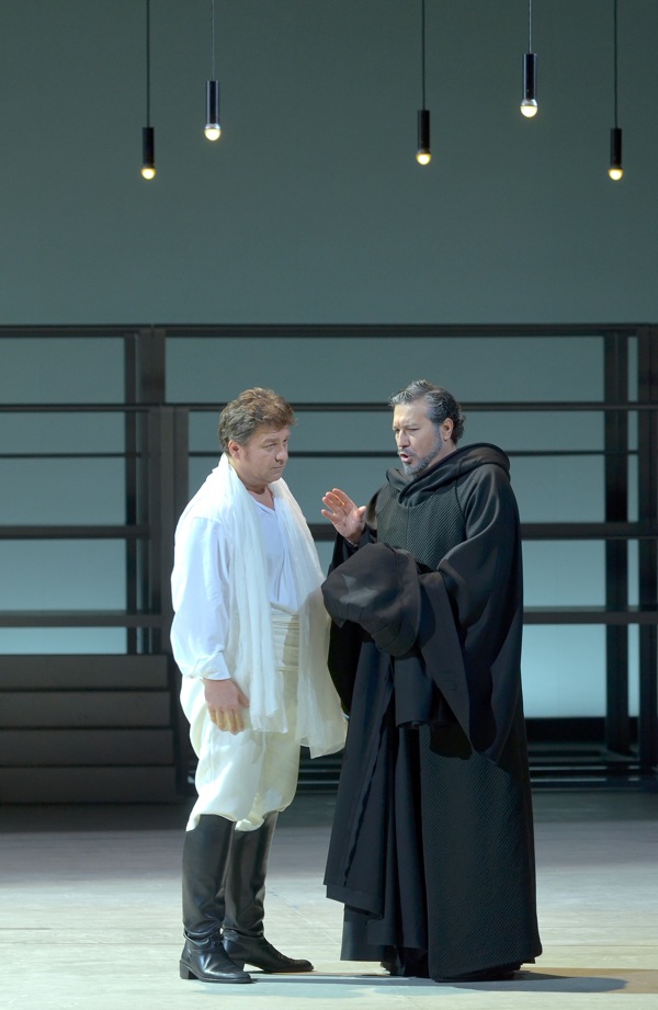 Исполнитель роли короля Людовик Тезье пел откровенно фальшиво. У него очень мощный, громкий, даже грубоватый, легко перекрывающий оркестр баритон с густым тембром и массой призвуков, но интонация грязная. Впечатление, что он не просто поёт какую-то четвертитоновую музыку, но ещё к ноте сначала подъезжает на глиссандо, а потом куда-то съезжает. Поэтому все унисоны с оркестром и ансамбли с другими певцами звучат неким кластером, чувствуются большие сложности то ли со слухом, то ли с контролем интонации. Вообще все мужские голоса выглядели без эмоциональных красок. Они просто пели свои партии и всё. За исключением финального дуэта, где исполнитель партии Фернана всё-таки заразился энтузиазмом от Леоноры.