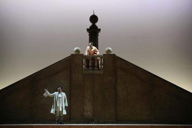 Стиль миланского архитектора Пицци (прославленный мастер – архитектор по образованию) легко узнаваем по присутствию деталей, отличающих все его постановки. Неминуемы использование архитектурных элементов: арок, лестниц, колонн и пилястров (действие, кажется, происходит в знаменитом дворце Пилотта, одном из символов Пармы), смена деталей на глазах у зрителей, естественны чистые и сияющие цвета однотонных задников, эффект театра теней, обязательна безупречная элегантность костюмов. Словом, скорее, живые картины, чем отмеченный настоящей режиссурой спектакль.