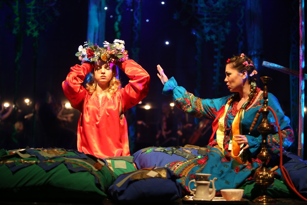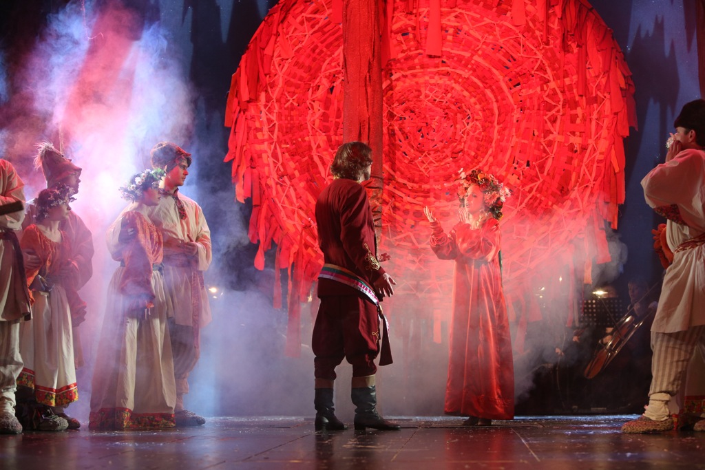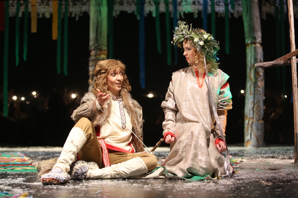 Именно так и поступили в петербургском «Зазеркалье»: здесь есть свой большой репертуар для взрослых, есть множество детских спектаклей с оригинальной, пограничной жанровой принадлежностью. А есть и облегчённые версии больших опер, спектакли, закладывающие в детские души долгосрочную программу вживания в сложный, но бесконечно красивый мир оперы. Такова «Снегурочка» в постановке молодого режиссёра Василия Заржецкого, выпускника художественного руководителя театра Александра Петрова. Да, в ней почти нет места глубокой философии пантеизма, преклонения перед рациональностью природы, перед её вечным циклом, в котором главная героиня – аномалия, априори лишняя, и её смерть – естественное разрешение противоестественной ситуации, противоречия, красивого, но нежизнеспособного. В этом спектакле на первый план выходит сокровенная лирика и фольклор. Но почему нет? Разве не глубоким и очень тонким лириком был Римский-Корсаков, разве не был он фольклористом, всю жизнь, по заветам Глинки, преклонявшимся перед народным творчеством и искавшим в нём источник своего вдохновения?