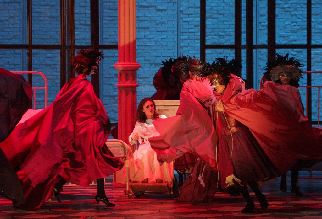 И ещё одно разочарование – дирижёр. Настолько спонтанными и непродуманными показались темпы, то бегущие, как на пожаре, то максимально замедленные, а расхождения с хором, особенно в финале 1-го акта и на балу в 3-м были порой столь критичны, что наивно полагала, маэстро Лоран Кампеллоне тоже приглашён вот только что, на три апрельских спектакля. Каково же было изумление, когда из премьерных рецензий узнала, что именно Кампеллоне готовил и делал постановку. И кроме некоторых спорных темповых моментов иных претензий к нему не было. Отсутствие корректурных репетиций перед новой серией спектаклей? Что же, у нас всё возможно. Но оба шлягерных оркестровых фрагмента – Интродукция и вступление в 4-му акту, были сыграны неряшливо, а знаменитое «жирное» звучание струнных Большого театра на сей раз скорее можно было назвать «пёстрым», не унисонное рыдание скрипок над участью Травиаты, а жалкие всхлипы. Но теперь ведь принято обыгрывать действием и увертюры, и прочие оркестровые куски. Так и здесь: грубое «двиганье» больничных кроватей, шарканье множества докторов и санитаров плюс монахинь-сиделок, оживляж с поднятием–уходом на процедуры выздоравливающих и выносом на носилках умерших, повторялось как тематическая арка на обоих «скрипичных» интродукциях. Мало того, что никакого отношения эта суета не имеет к музыке Верди, но шумов и стуков от реквизита и статистов столько, что истаивающее пиано струнных не слышно! Даже где-то понимаю нежелание скрипачей-виолончелистов играть с полной отдачей, когда, пожалуй, одна из самых гениальных тем Любви, та, что звучит в повести Александра Грина на корабле с Алыми парусами, которого дождалась Ассоль, вынуждена стать фоновым сопровождением для нелепых больничных зарисовок.