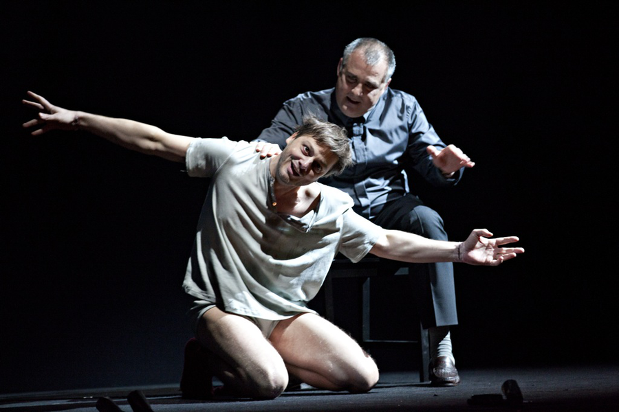 Надо сказать, что взаимоотношения Клода с Альбаном были изображены и в музыке, и в либретто достаточно целомудренно – авторы вполне остались в стилистике Гюго. Но режиссёр решил, что этого недостаточно, и постановка перенесла нас скорее в мир Жана Жене. Если в либретто Клод впервые видел Альбена в момент, когда заключённые развлекались, перебрасывая мальчишку от одного к другому, то в спектакле Оливье Пи его «пускали по кругу» в куда более грубом смысле – стянули с него трусы и давай имитировать групповое изнасилование. Ваш покорный слуга может теперь с гордостью рассказывать своим внукам, что собственными глазами видел голый зад знаменитого бразильского контратенора Родриго Феррейры, недавно участвовавшего в нашумевшей мировой премьере оперы Джорджа Бенджамина Written on Skin на фестивале в Экс-ан-Провансе.