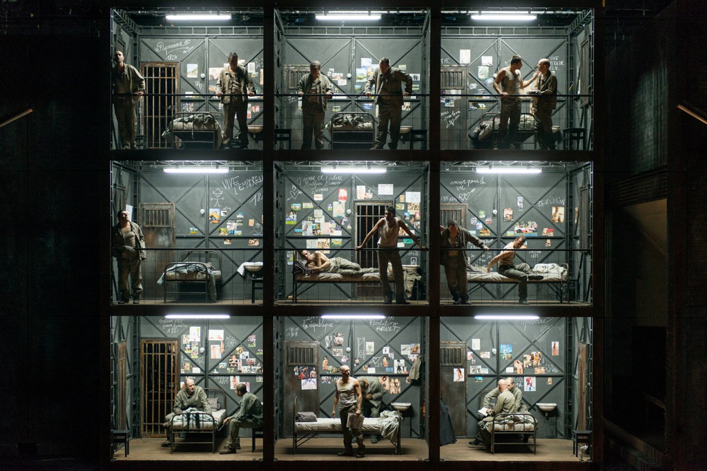 На сцене была водружена многоэтажная конструкция, символизировавшая тюрьму, с ячейками-камерами. Приём, прямо скажем, не новый. Посадить в эти камеры заключённых оказалось делом несложным, а вот занять их чем-нибудь, чтобы они в этих камерах смотрелись органично, а не торчали там как мебель, на это у Пи уже не хватило то ли времени, то ли фантазии. Но до таких ли мелочей, когда на карту поставлены проблемы мирового масштаба! Одни только Клод с Альбеном в своей камере не теряли времени даром, неистово предаваясь любовным утехам. Иногда доходило до абсурда. Например, неграмотный Клод просит, чтобы Альбен написал письмо его жене и дочери, а в это время они яростно срывают друг с друга одежду и полуголые валятся на кровать. Нет, это вполне могло бы быть даже пикантно, если бы хоть как-то вязалось с музыкой.