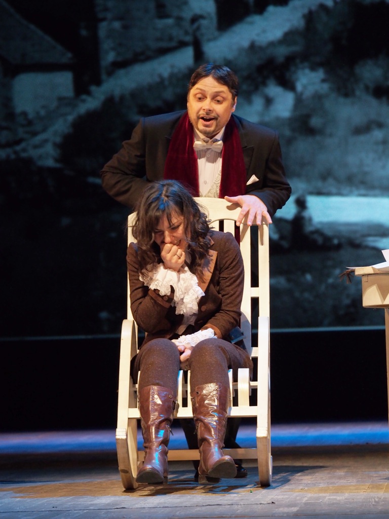 Сама же по себе постановка, поражающая глубокой философичностью, лаконичной интимностью и самодостаточной органичностью сценического воплощения, создает не просто настоящее пиршество для глаз, но и подталкивает к радости для слуха. Татьяна Печникова своей вокальной трактовкой словно намеренно – и при этом вполне убедительно! – разрушает стереотипы партии Виолетты, к которым мы привыкли еще с советских времен, когда петь ее полагалось исключительно высоким «лирико-колоратурам». Голос певицы звучит мощно, сильно, взволнованно страстно, необычайно выразительно именно в драматическом аспекте, однако недостаток его нюансировки и мелкой техники на общем впечатлении от интерпретации в данном случае практически не сказывается. Эта роль певицей давно, что называется, «впета в артистическую плоть и кровь» – и степень аффектации образа Виолетты, если хотите, даже катарсиса восприятия, оказывается необычайно высокой. Татьяна Федотова, наоборот, создает образ вполне традиционный, пленяющий трогательной лиричностью, тонкими нюансами и эмоциональными полутонами. Она впервые поет Виолетту на театральной сцене, но нарисованный ею вокально-артистический портрет отличается чувством стиля и ощущением жизненной правды.
