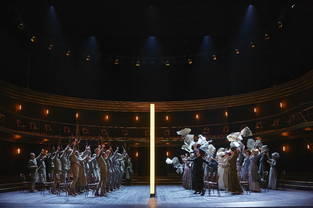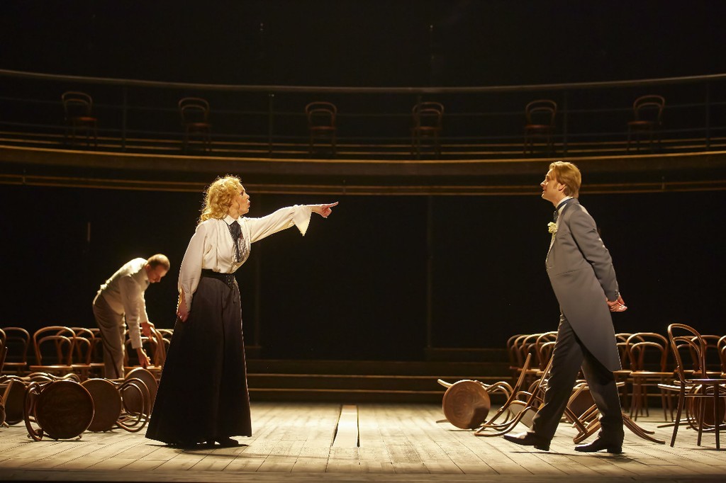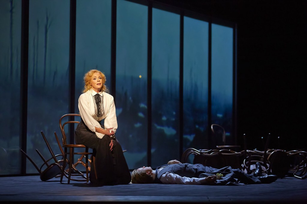 Прежде чем перейти к вокалу отметим, что художественное оформление спектакля выглядело очень функциональным и без излишеств, представляя собой некую условную площадку для розыгрыша всего представления, окаймленную полукруглым балконом и стоящими на нем стульями, создающими некое подобие театрального зала. О роли экранов уже говорилось выше. Сценограф постановки – англичанка Эс Девлин, много ставящая в Ковент-Гардене, – является одним из авторов церемонии закрытия лондонской олимпиады.