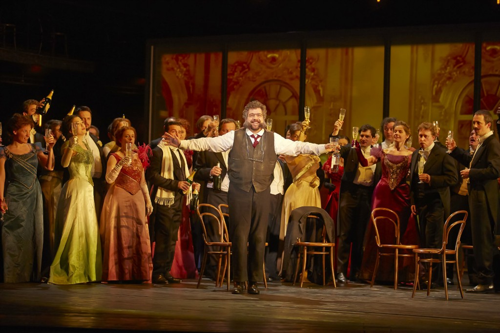 Но не будем пересказывать читателям либретто оперы, с ним можно ознакомиться в опубликованной в нашем журнале словарной статье, посвященной 150-летнему юбилею со дня ее мировой премьеры в Баден-Бадене (1862). Там же можно найти и краткую сценическую историю опуса, существующего в нескольких редакциях (с диалогами и речитативами). Для нынешней венской премьеры постановщики избрали изначальную авторскую версию.
