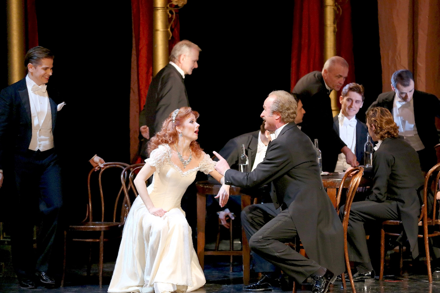 Что же можно сказать об увиденном? Абсолютно классический по духу спектакль в своих визуальных решениях отражает ту непередаваемую декадентскую атмосферу Belle Époque, художественный стиль которой во Франции именуют ар нуво, в Германии югендстиль, а в Австрии сецессион. Это вполне соотносится с сюжетом — события происходят в 1914 году.