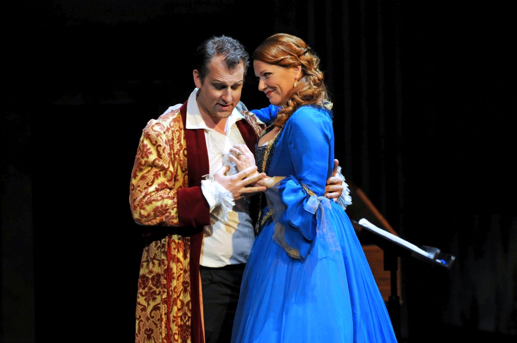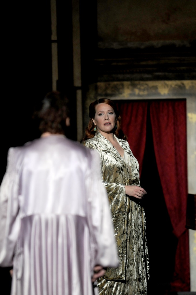 Самое время вспомнить ещё одного важного персонажа – Ла Роша, директора театра. Человека, от которого зависят и поэты, и композиторы, и актрисы. Этому, на первый взгляд, циничному ремесленнику, бесцеремонно захрапевшему во время открывающего оперу струнного секстета, принадлежит едва ли не самый пронзительный монолог во всём произведении – крик души об упадке искусства (вероятно, во многом являющийся отражением мыслей самого автора). И тут снова – огромная артистическая удача. В спектакле Ла Рош очень кстати смахивал на пожилого современного режиссёра: пиджак, небрежно повязанный шейный платок, хвостик из поседевших и поредевших волос. А пел его Виктор фон Халем, около 20 лет назад записавший эту партию в студии в компании с Кири те Канавой и Бригиттой Фассбендер. Да, слышно, что сегодня певец уже не на пике формы, но что с того, если поёт он всё равно завораживающе. Даже его возраст «работает на образ». В своём обличительном монологе фон Халем метал громы и молнии и просто потрясал. Жалко было старика Ла Роша, чью филиппику толком и не слушал-то никто. Когда искусство является ремеслом – это выглядит не слишком поэтично, но ещё хуже, когда из ремесла, профессии оно превращается в демагогию и хобби. Думаю, Рихарду Штраусу было что сказать по этому поводу.