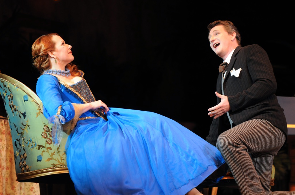 Граф – один из самых интересных персонажей произведения. Он не любит оперу, однако именно ему пришла в голову мысль, чтобы Оливье и Фламан написали оперу о событиях прошедшего вечера. Благодаря замечательному баритону Кристофу Полю, граф в спектакле был едва ли не лучше всех. В его исполнении этот «рациональный, классический ум», для пущей убедительности вырядившийся в «вольтерьянский» халат, с которым не расставался на протяжении всего спектакля, на поверку оказался здоровенным детиной, под маской философа безуспешно пытающегося скрыть своё совсем не философское влечение к актрисе Клерон. Он даже сам (вот что любовь с людьми делает!) пробует себя в качестве актёра-любителя. Отношения Графа с сестрой изображены, возможно, чересчур нежными – не без намёка на инцест – но в целом Поль был и вокально, и сценически просто безупречен. Я был удивлён тому, что ему практически не кричали браво. Видимо, дело в том, что Граф многим кажется персонажем второстепенным, хотя это, конечно же, далеко не так.