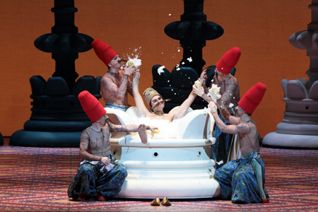 Именно так и поступает в своей постановке Писарев. Он ничего специально не вычитывает в этом сюжете – вся соль его спектакля в ситуациях и положениях, придуманных и выстроенных им на сцене и говорящих сами за себя посредством музыки и пения. Здесь все растворено в многочисленных пластических нюансах и интонациях. Здесь важнее не что, а как! Описать это детально, практически, невозможно – надо видеть своими глазами. Другое дело – заумные действа с целым букетом культурологических и психологических подтекстов, так и просящихся на страницы научного трактата или, на худой конец, толстого премьерного буклета, чему мы имеем множество примеров. Слава Богу – ничего этого здесь нет!