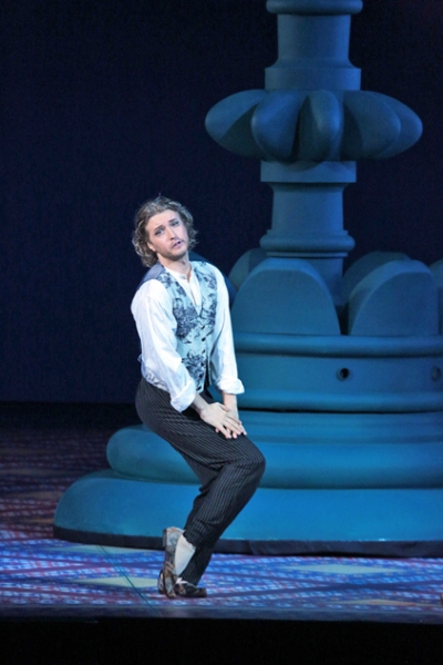 Волнения оказались напрасными – Коробов в целом справился со своей задачей, оркестр звучал мягко и артикулировано, создавая комфортную атмосферу для вокалистов, а штрихи были осмысленными с точки зрения стиля. Замечания есть, их сравнительно немного, хотя они и досадны. Так, иногда чересчур выпирали темповые контрасты – что-то плавное звучало медленнее обычного, а живое – быстрее. Это придавало исполнению, подчас, не свойственный россиниевскому стилю налет вычурности и утяжеляло художественное высказывание. Характерный пример – слишком медленная и контрастная связка между экспозицией и репризой в увертюре, звучание которой вообще показалось мне чересчур многозначительным и серьезным, несмотря на постановочную шутку на грани фола – появление дирижера за пультом уже после первых аккордов. Это, конечно, мелочь, которую можно отнести к разряду интерпретационного субъективизма. Более критичными оказались темповые излишества в ряде ансамблей, которые могли привести к катастрофе… но, к счастью, не привели. Так, знаменитая звукоподражательная стретта чуть было не пошла вразнос, но вовремя была спасена совместными усилиями дирижера и солистов, «войдя в берега». Но повторю, общей элегантной колористической гаммы эти отдельные «жирные» мазки и кляксы не нарушили. Да и не надо забывать – премьерное волнение, все-таки! Отдельной похвалы заслуживает духовая группа оркестра, звучавшая на редкость собранно. Очень понравились флейтовые пассажи, рулады гобоя, а также красивое соло валторны с трелью в каватине Линдора.