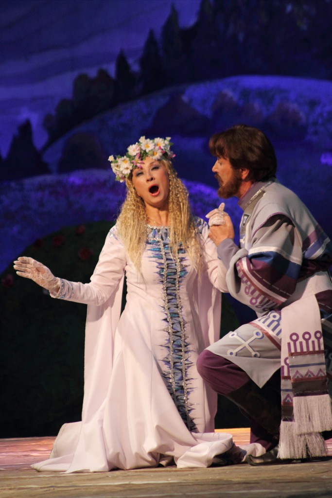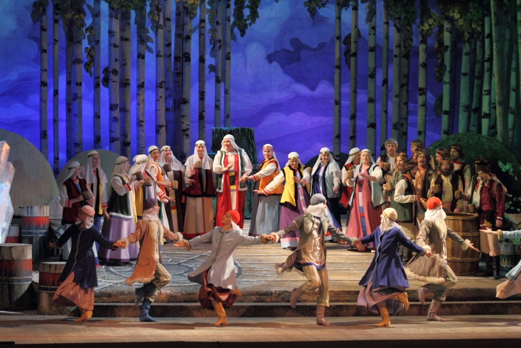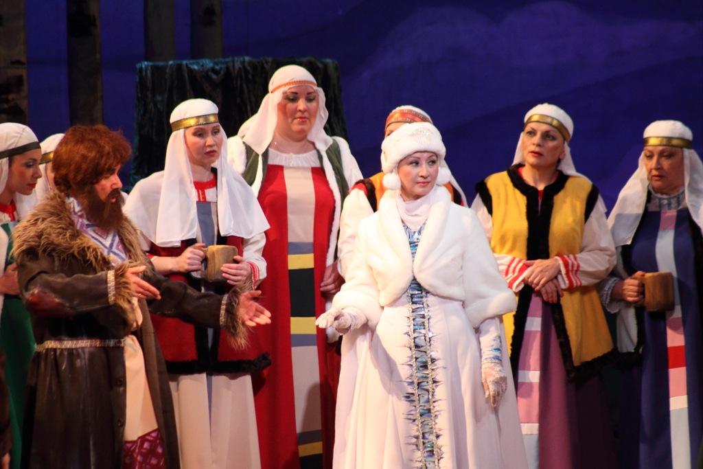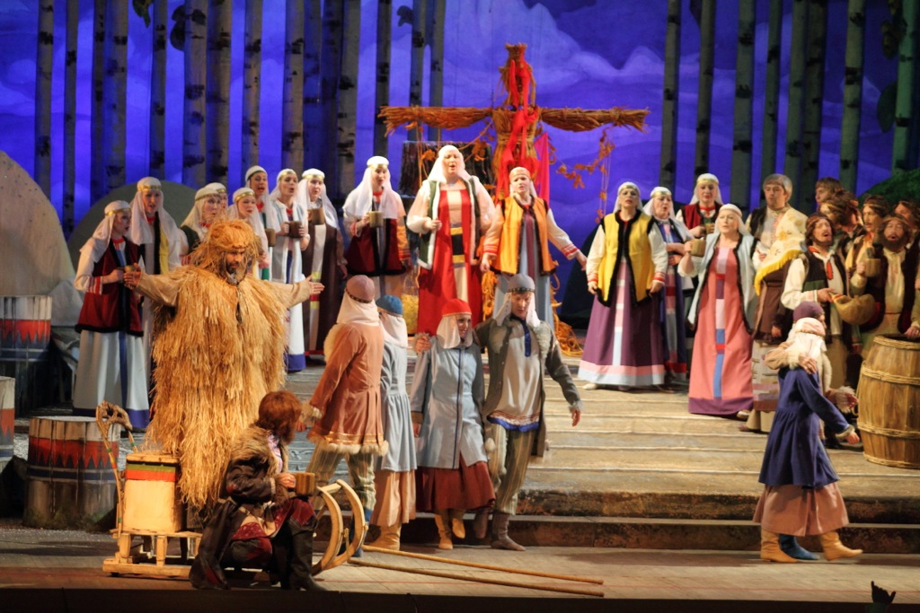 Фестиваль «Сыктывкарская весна» («Сыктывкарса тулыс», 28 мая – 4 июня) в этом году немного задержался, открывшись в столице Республики Коми не в апреле, как это бывает обычно, а лишь в конце мая, когда в городе незадолго до наступления календарного лета установилась по-настоящему летняя погода. Сыктывкар запомнился ярким солнцем, ясным ослепительно голубым небом, нежной зеленью берез на улицах и в парках, поднял настроение волнующей романтикой белых ночей. За три дня в этом приветливом и уютном городе на берегу Сысолы мне удалось побывать на трех фестивальных спектаклях. О «Севильском цирюльнике» Россини и «Чио-Чио-сан» («Мадам Баттерфляй») Пуччини речь пойдет в следующий раз, но прежде объектом нашего внимания станет фестивальная премьера – опера Римского-Корсакова «Снегурочка». Ее либретто написано самим композитором по мотивам одноименной пьесы Островского, в силу чего название оперы, как и пьесы, также снабжено подзаголовком «Весенняя сказка». А это уже как нельзя лучше соотносится с текущим моментом!