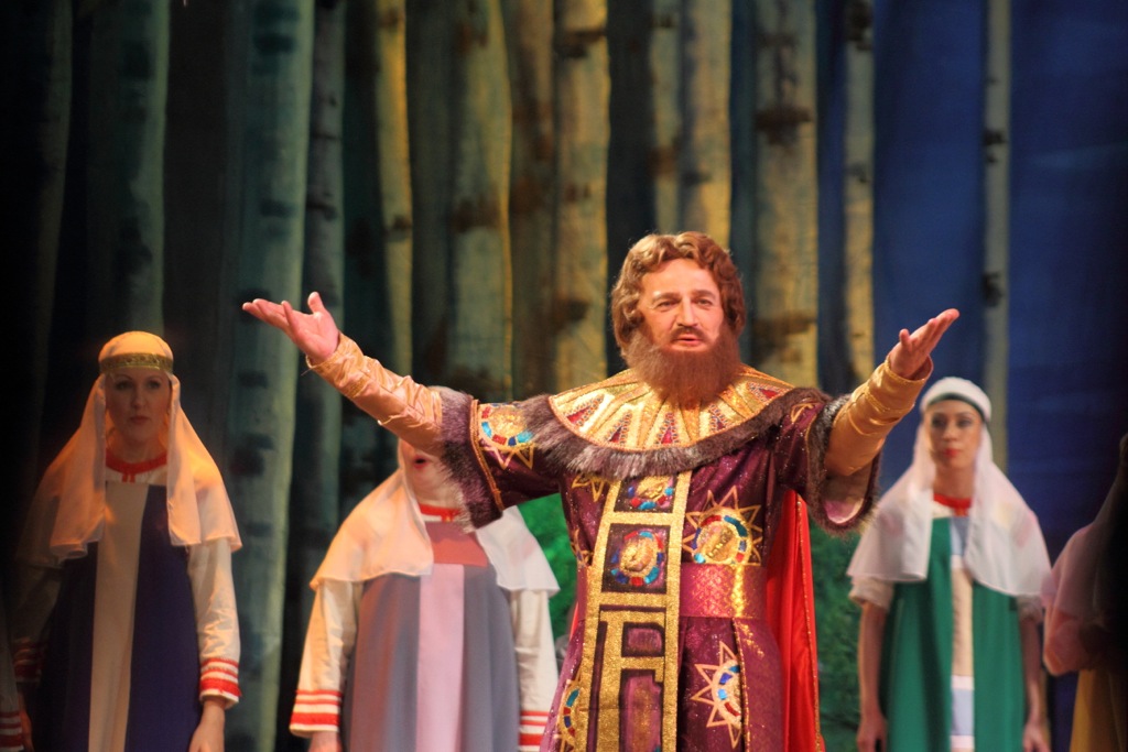 Итак, на сцене оживает не просто сказка ради самой сказки, а настоящая социальная притча, наполненная перипетиями сложных человеческих взаимоотношений и рассказываемая философско-содержательной и эстетически образной музыкой Римского-Корсакова. В мир музыки и драматически контрастного сюжета властно погружает по-весеннему яркая, но не кричащая аляповатостью сценография, тяготеющая не к монументальности, а к языческой символичности, старинной славянской обрядовости и тонкой живописности раздольных природных картин. В ткань спектакля гармонично вплетен и богатый хореографический пласт, а мизансцены и хоровые эпизоды, кажется, намеренно решены естественно просто и абсолютно эпично, так что реалистичная «плакатность» визуального ряда доверительно правдиво создает всеобъемлющее ощущение большого оперного стиля.