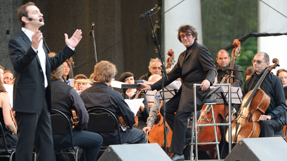 Уточним, что два фестивальных open air вечера в Архангельском имели статус открытия музыкального смотра, объединяющего культурные акции в разных городах Подмосковья. 22 июня было представлено концертное исполнение оперы Чайковского «Евгений Онегин» в сценической версии Юрия Башмета, вобравшей наиболее популярные фрагменты из нее и дополненной звучанием пушкинских строф из поэмы-первоисточника. На сей раз Государственный симфонический оркестр «Новая Россия» был попеременно ведóм двумя музыкантами – маститым Юрием Башметом (художественным руководителем и главным дирижером) и молодым талантливым дирижером этого коллектива Денисом Власенко. В исполнении приняли участие артисты Молодежной оперной программы Большого театра и солисты московских музыкальных театров, драматические актеры Константин Хабенский и Янина Колесниченко, а также Филармоническая хоровая капелла «Ярославия» (художественный руководитель и главный дирижер – Владимир Контарев).