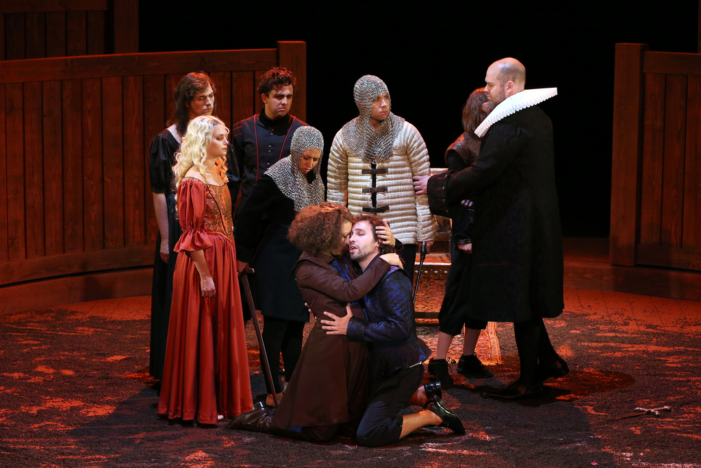 Возможно, сложность воплощения «Елены» ещё и в том, что для неё требуются три контратенора, из которых один – сопранист (Менелай), виртуозная партия, рассчитанная на исполнение певцом-кастратом, чья тесситура поднимается порой выше партии Елены! Сегодня для исполнения этой роли был найден Валер Барна-Сабадус, блестяще справившийся с задачей. Елена, она же Афродита в прологе, исполнена Эмокой Барат – хорошее светлое барочное сопрано, а Тезей – Фернандо Гимараэсом – не менее хорошим барочным тенором. Из остальных, второстепенных ролей блестящ буфонный тенор Эмилиано Гонсалес Торо, исполняющий шута Иро. В целом вокальный состав ровный и очень-очень на высоте. Практически каждый певец, кроме Елены, Тезея и Менелая исполняет несколько ролей (ещё одна характерная деталь барочной венецианской оперы).