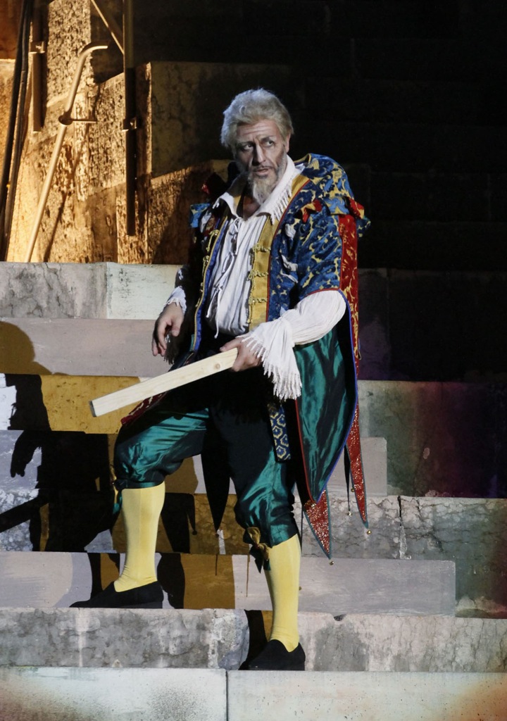 Вечер в целом, удался, хотя театральная сторона зрелища была ниже всякой критики. На свет были вытащены все возможные и всем хорошо знакомые штампы. Элементы декораций, похоже, извлекли со склада, где они пылились годами, добавив несколько деталей, провоцирующих на улыбку. В первом действии «Травиаты» присутствовали веками виданные двери, балюстрады, диваны и пальмы, во втором акте «Риголетто» нечто подобное ренессансному интерьеру, который «оживлял» огромный пес. Четвертый акт «Трубадура» был торжеством оперной вампуки: зав. режиссерским управлением Арена ди Верона Стефано Треспиди соорудил на авансцене груды из поверженных воителей, сторонников Манрико и Графа ди Луна, погибших при взятии замка Кастеллор (можно было только посочувствовать артистам миманса, которым пришлось «проваляться» довольно долго, на протяжении арии Леоноры, «Miserere» и кабалетты). Как только хор, одетый в длинные темные одеяния и остроконечные колпаки с прорезями для глаз, выстроился вдоль рампы и затянул «Miserere», все эти «мертвые» встали и пошли восвояси! То ли плакать надо было, то ли смеяться...